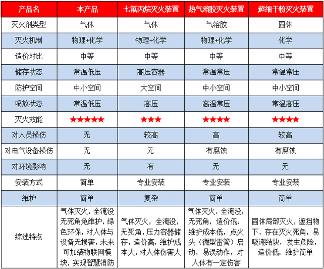 本產(chǎn)品是一種應(yīng)用于小型封閉空間如配電柜、電表箱、網(wǎng)絡(luò)服務(wù)器、新能源電池倉(cāng)、充電樁、電梯控制柜等火災(zāi)防護(hù)的新型自動(dòng)滅火裝置。