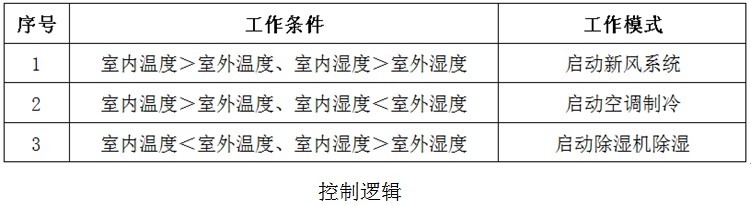 在確保室內(nèi)環(huán)境的前提下,依據(jù)室內(nèi)外溫濕度,控制風機、空調(diào)的切換運行。